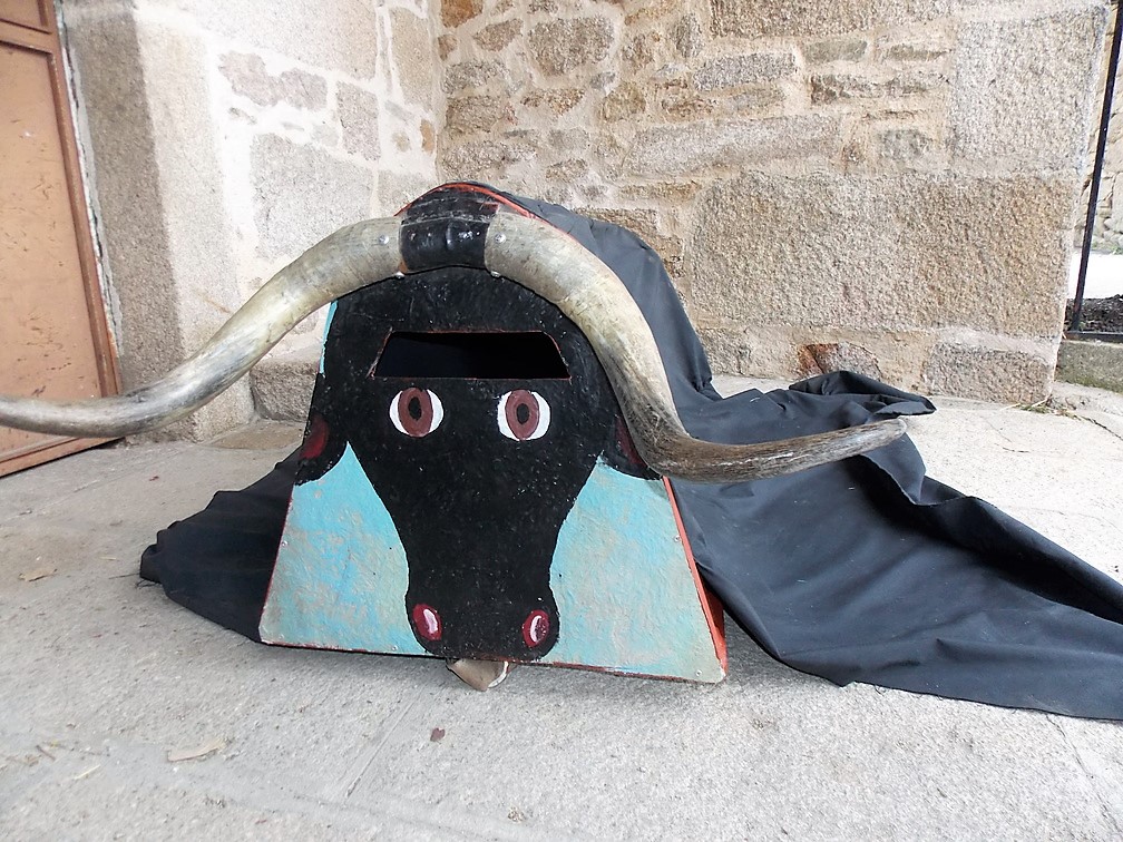 La Vaca Bayona consiste en un armazón cubierto de tela negra, rostro de vaca con cuernos, cencerro y rabo posterior. El simbolismo de la vaca es su carácter fertilizador, que busca la fertilidad del campo y de las mujeres, de ahí que se acostumbre atacar a las mozas.